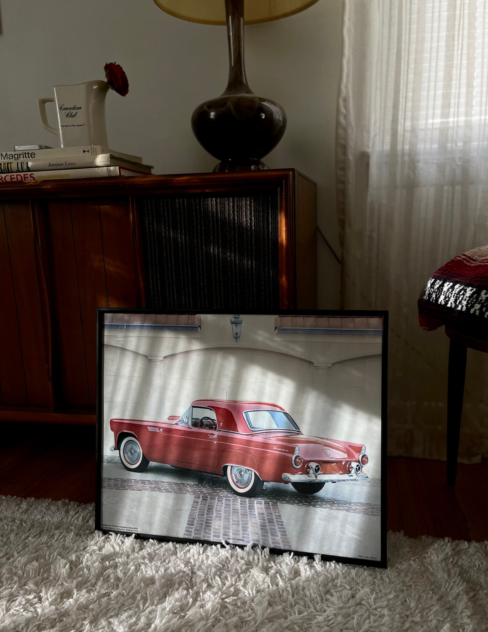 Red Thunderbird Print — Framed Vintage Auto Photograph